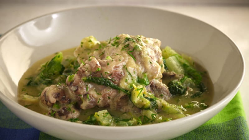 - Για το αυγολέμονο, χτυπάμε σε ένα μπολ τους κρόκους, το κορν-φλάουερ και το χυμό λεμονιού, προσθέτουμε σταδιακά αρκετό ζουμί από το φαγητό και, ύστερα, ρίχνουμε όλο το αυγολέμονο στο φαγητό, ανακατεύοντας ελαφρώς.