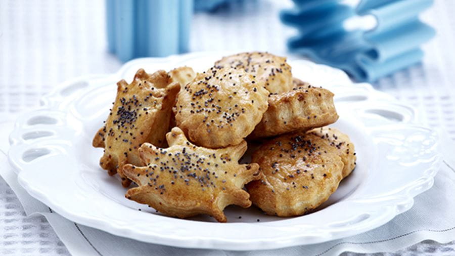 - Αφού χτυπήσουμε ένα αυγό, αλείφουμε τα μπισκοτάκια και, μετά, πασπαλίζουμε με σουσάμι ή μαυροκούκι.